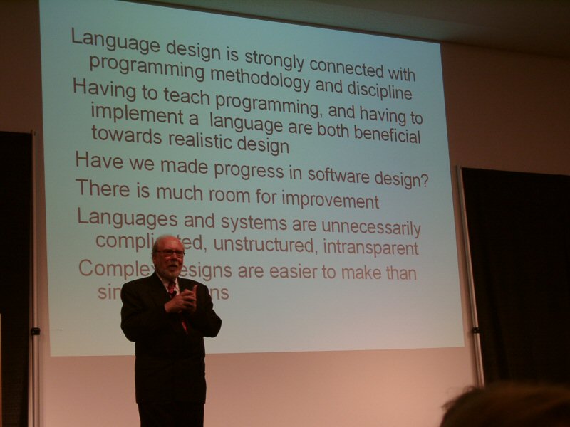 Wirth was asked after the lecture what he thought of the rise of C/C++. He said he was very glad that subject had not come up during the Q&A period, which I think says it all. I asked him how he felt about the computing professions move away from type safe languages like Pascal to languages like C/C++. He replied that he believed the profession was moving back in the other direction, via languages like Java and C#.